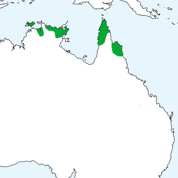 Distribution : Recorded from several places in North Queensland and across the top of the Northern Territory.